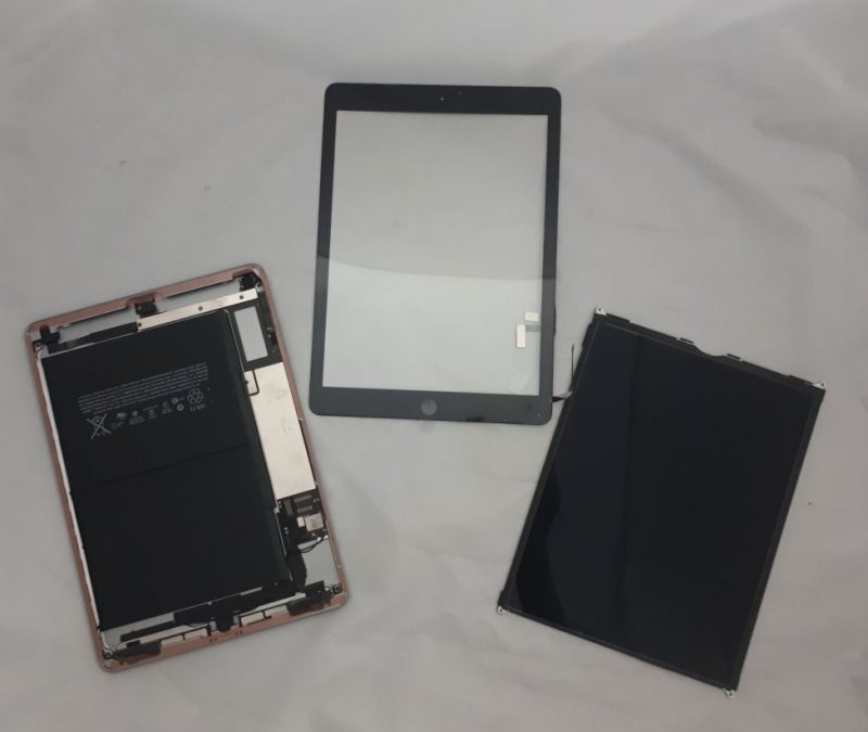 iPad Air ready for a new screen, after cleaning the original glue from the case we apply double sided tape to make sure once the new screen is fitted it stays fitted. We have found if you only use the glue supplied with the replacement touchscreen they come away from the body of the ipad.
